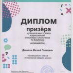 Данилов Матвей призёр по труду МЭ ВсОШ