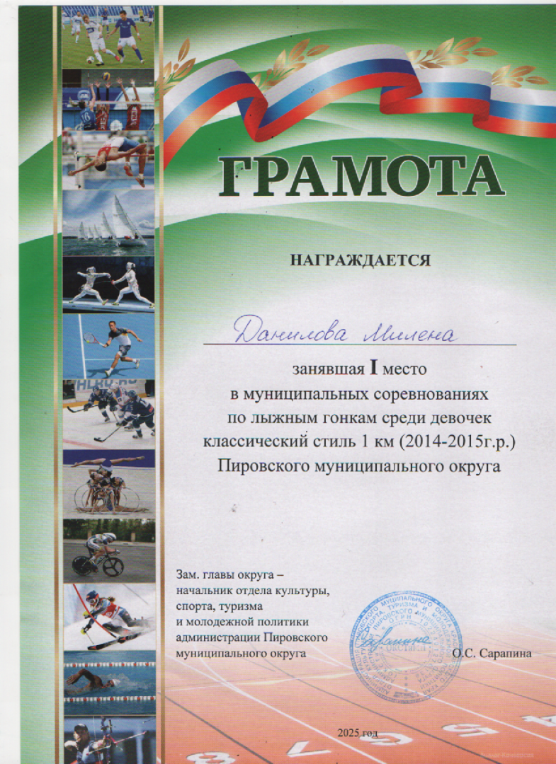 Данилова Милена 1 место