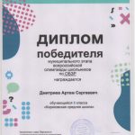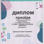 Дмитриев Артём призер по труду МЭ ВсОШ
