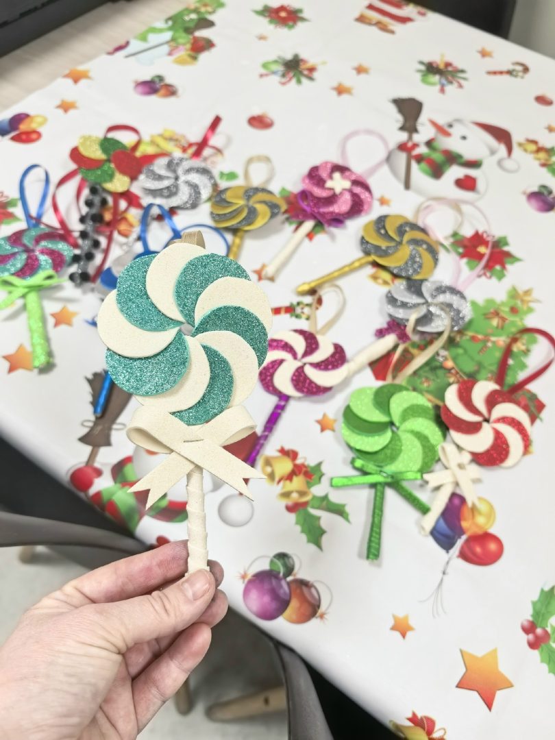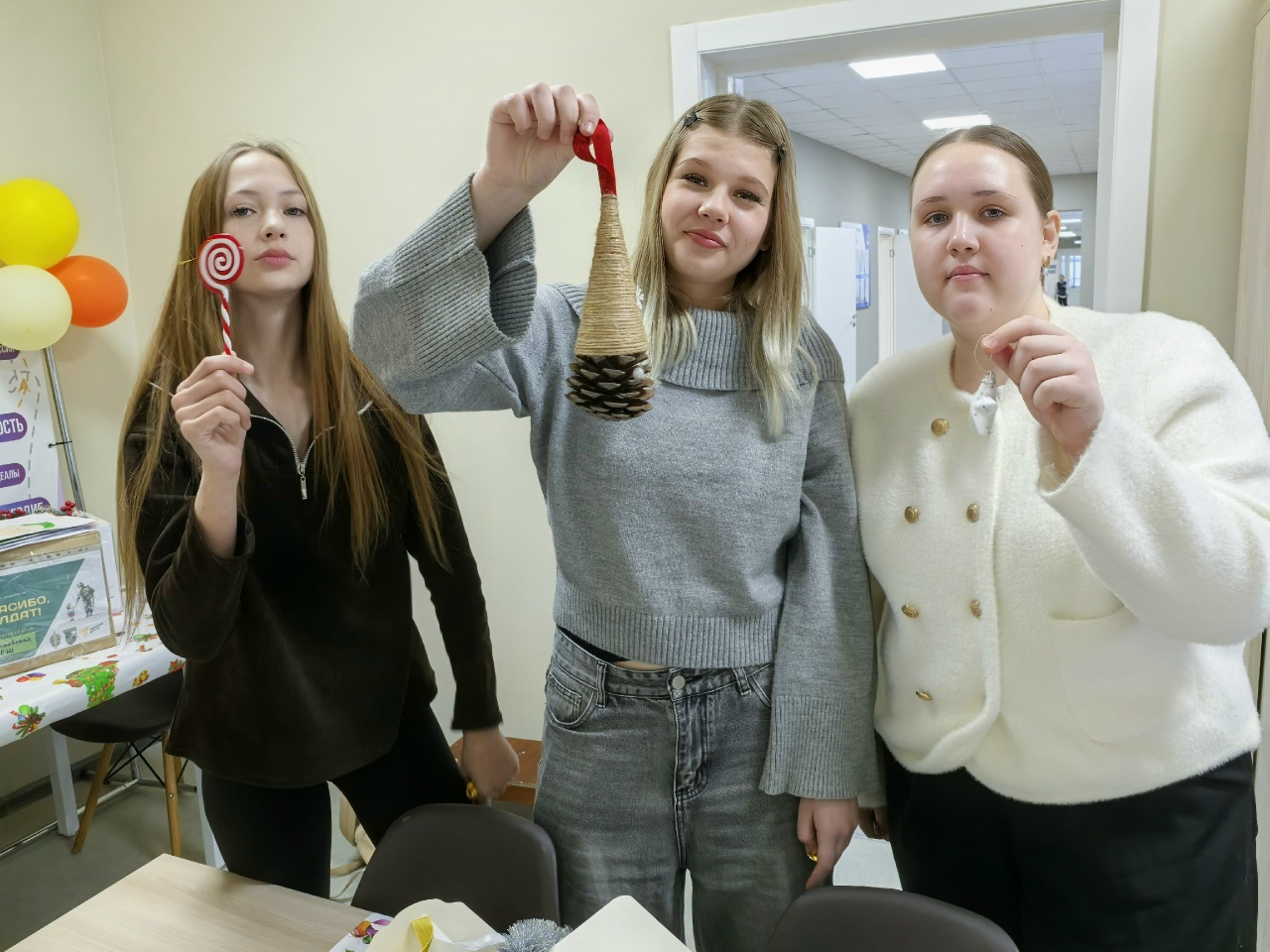Наши старшеклассники вместе с советником директора по воспитанию создали на творческой мастерской ёлочные игрушки из фоамирана. Три из них отправились в соседний район. Через жеребьёвку «Тайный Санта» они обрели своих счастливых обладателей в Кононовской средней школе имени Героя России А. А. Рыжикова, расположенной в Сухобузимском районе.