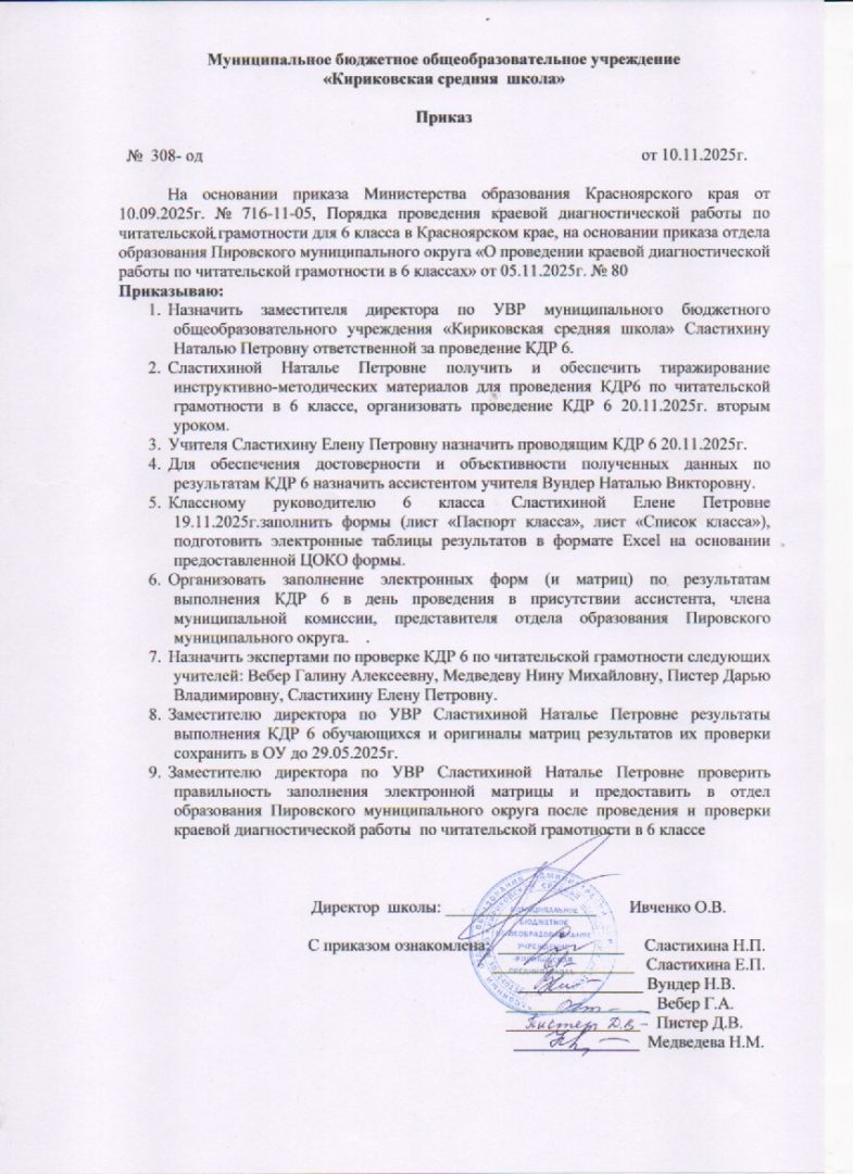 - Приказ о проведении КДР6 по читательской грамотности в 2024-2025 учебном году