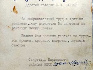 За достигнутые успехи в работе был занесён в районную Книгу Почёта (1971).