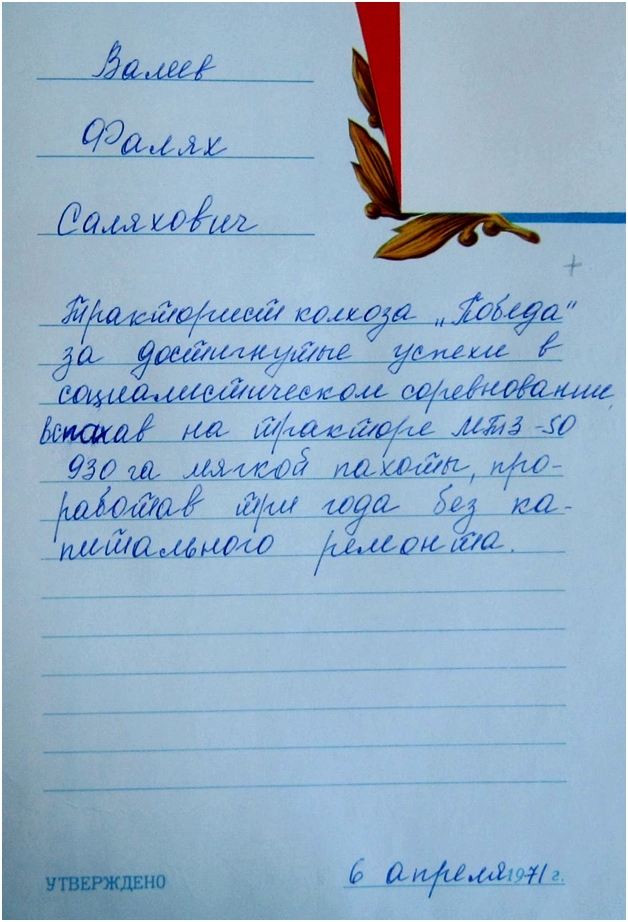Тракторист Шагирисламской бригады колхоза «Победа».